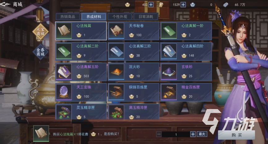 養(yǎng)成材料商店是元寶商店的一個設(shè)定,里面的道具都是要消耗元寶來進(jìn)行購買的。不過在價(jià)格上設(shè)定也是比較合理的,所以說玩家也不用擔(dān)心多花費(fèi)資源了。