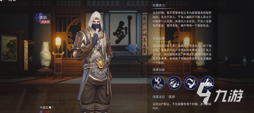 溫韜這個(gè)俠客的定位是一個(gè)醫(yī)師,醫(yī)師的話在輸出能力上也是有一些的, 不過比起輸出類型的俠客是肯定會(huì)低一些的。在品級(jí)上是SR級(jí)別的,這個(gè)級(jí)別的俠客大多都還是不錯(cuò)的,來看一看技能。