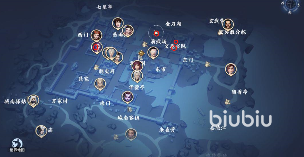 1、隱藏寶箱一:在演武場上方金刀湖左下角的一個院子里,需要走到小坑處才能找到寶箱。