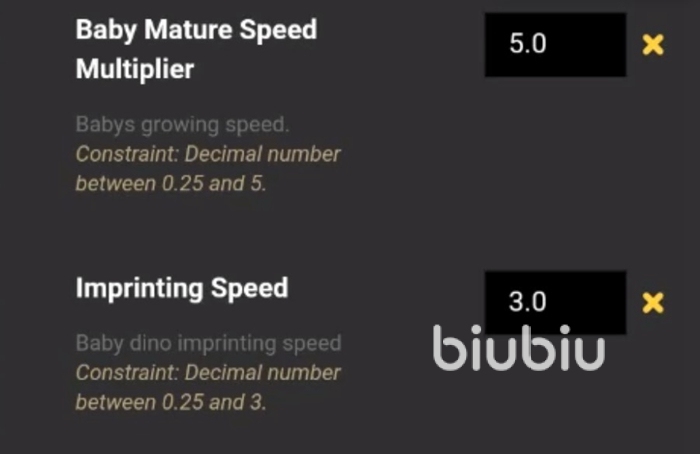 而在多人聯(lián)機(jī)模式下,如果我們自己購買了服務(wù)器進(jìn)行開服或者是擁有服務(wù)器的管理密碼就可以在服務(wù)器的設(shè)置中對服務(wù)器中的一些倍率進(jìn)行調(diào)整。我們在服務(wù)器管理后臺中的Server Settings(服務(wù)器設(shè)置)中,可以找到Gameplay(游戲性)這一欄中找到一些對倍率調(diào)整的設(shè)置選項(xiàng)。比如XP Multiplier中就可以對服務(wù)器內(nèi)玩家角色經(jīng)驗(yàn)值的獲取倍率進(jìn)行調(diào)整,倍率越大我們獲取經(jīng)驗(yàn)值的速度也就相對應(yīng)的越快,Harvesting這里中就可以對物品采集的速度倍率進(jìn)行調(diào)整。Mating則是控制了游戲中野生生物的刷新速度,Difficulty(難度)中就能對游戲的難度進(jìn)行設(shè)置,一般都有簡單、困難等難度可以選擇。