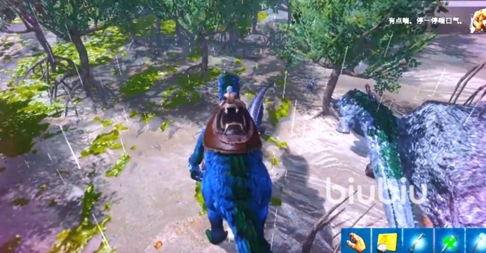 那么有玩家就要說,那我用靜心膏。那小編只能說,還是有大部分的玩家是要體驗馴龍的樂趣,絕大部分的玩家和小編一樣也是沒有能力可以大量購買靜心膏的。那么在我們使用麻醉箭將野生的鐮刀龍放倒之后就要給予一些食物給它來提升馴養(yǎng)度了。