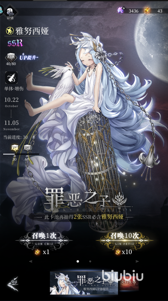 因?yàn)橛螒騽倓偵暇€,所以目前游戲當(dāng)中只有三個(gè)抽獎(jiǎng)池,分別是:永夜之下(夏倫UP池)、爆裂魔音(洛菲莉爾UP池)、魔女召喚(常規(guī)池),不管是哪個(gè)卡池SSR的概率都是2%,不算高,10連抽到SSR也并不容易。