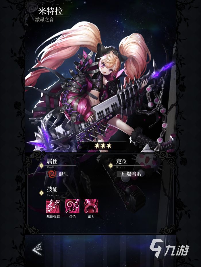 米特拉:這是和洛菲莉爾相同類型的魔女,他們兩個都是玩吉他的,米特拉的彈幕定位為爆鳴系,在命中敵人的時候,如果產生暴擊可以額外再次連發(fā),大家都知道洛菲莉爾的缺點,打一會兒就沒有能量了,但是米特拉的必殺技能雖然傷害沒有洛菲莉爾高,但是可以很頻繁的釋放,并且穿透敵人,蓄力技能更是可以對周圍持續(xù)造成傷害,她是混沌系的第二強。