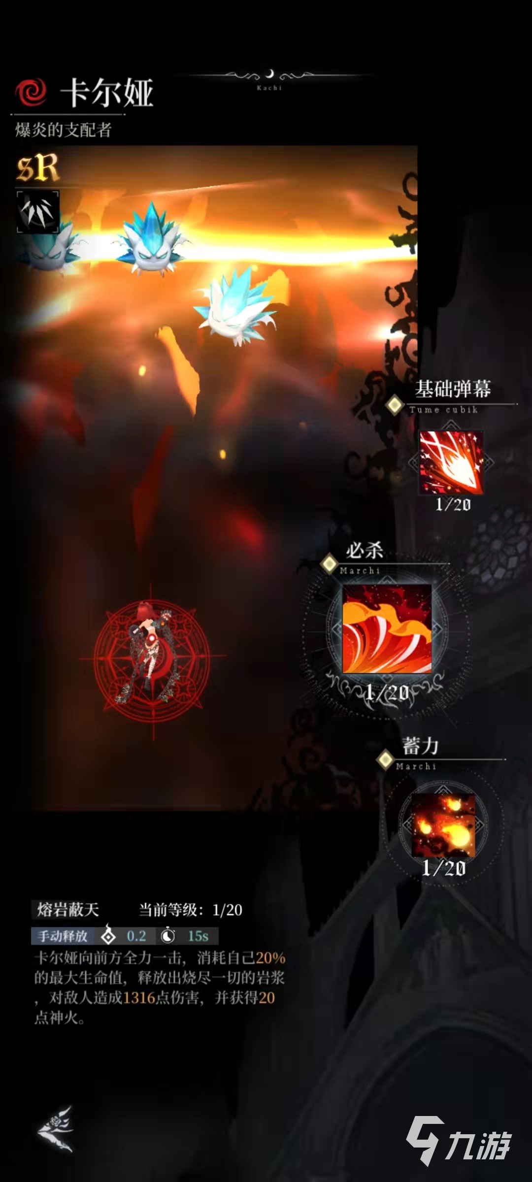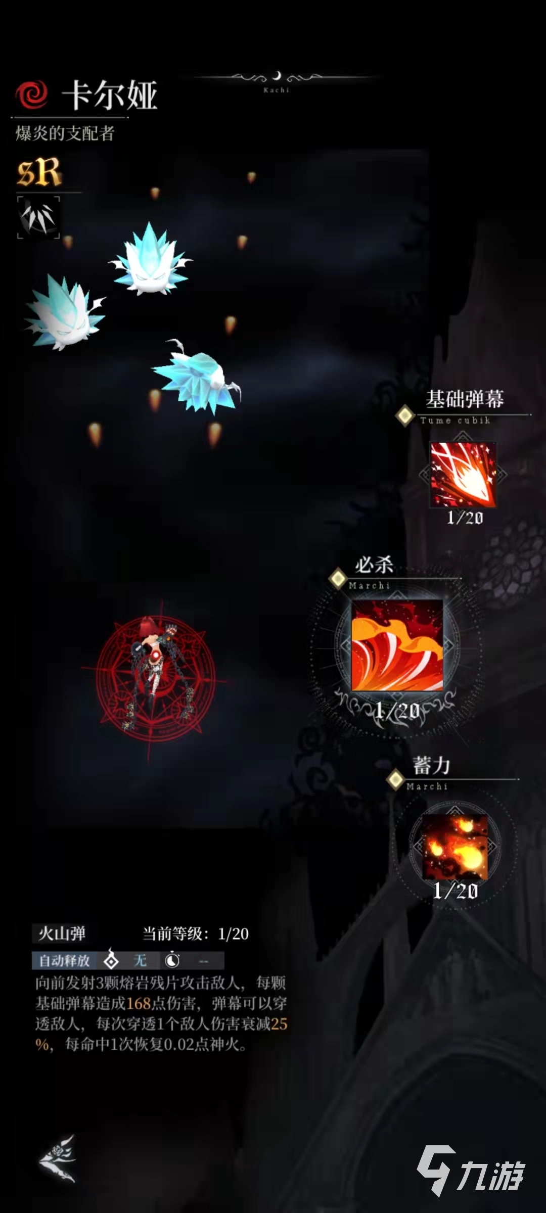 卡爾婭是屬于幻棘陣營的魔女,基礎(chǔ)攻擊火山彈,效果是可以自動(dòng)發(fā)射三顆熔巖殘片攻擊敵方,并且發(fā)出的彈幕可以穿透敵人,穿透之后傷害會(huì)逐漸衰減,但是對(duì)于一些比較密集的敵人,依然是非常好用的。每次普攻命中敵人,都會(huì)造成0.02點(diǎn)神火值的恢復(fù)。