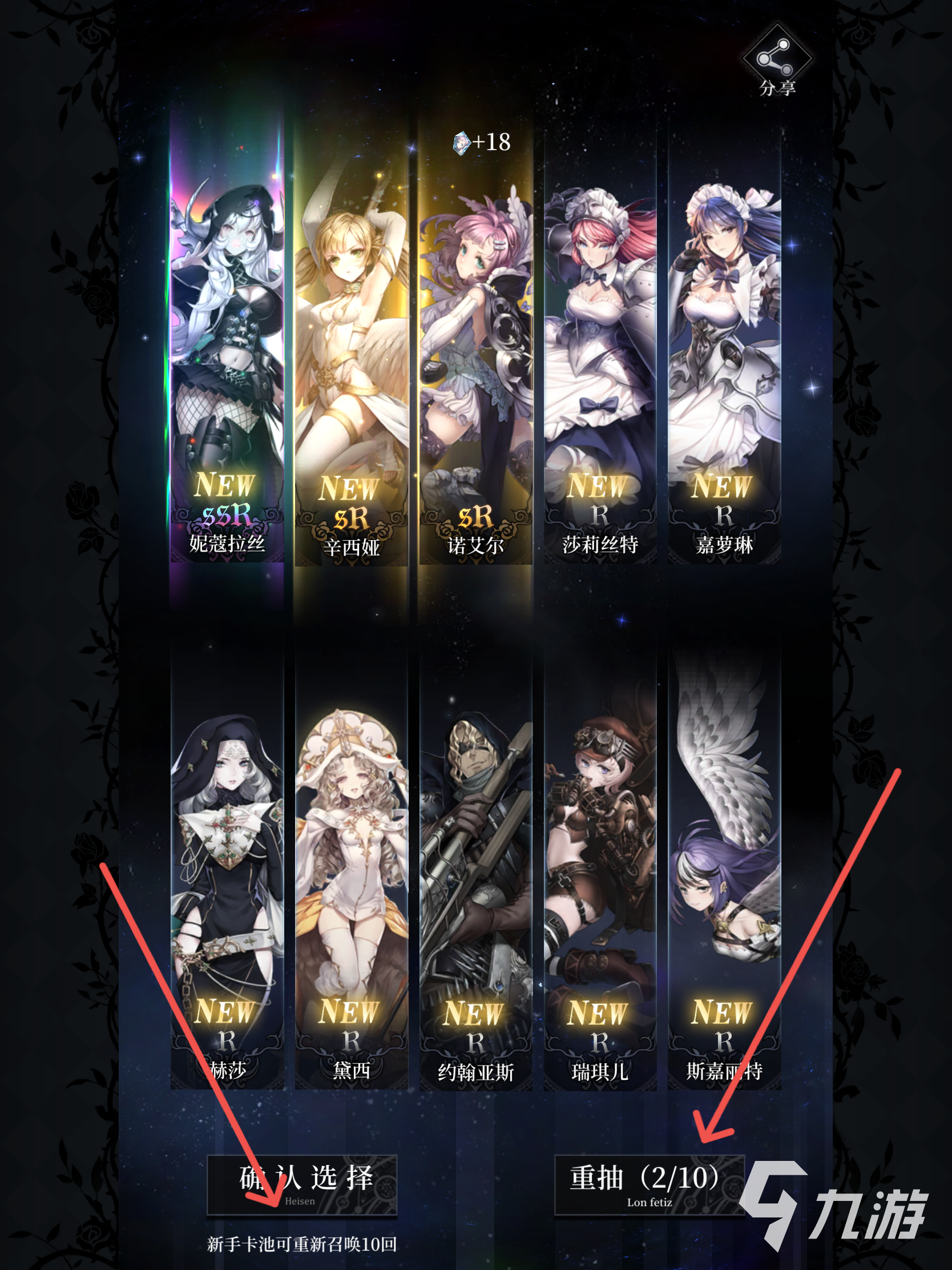 此次十連抽玩家們?nèi)绻麑γ看纬榈降目ㄅ撇惶珴M意的話,就可以立馬進(jìn)行更換,最多更換十次,所以說大家一共有十次更新的機(jī)會(huì),但是這里要注意,對于每位新手玩家初始號來講,游戲限制了ssr角色的獲取,只能是妮蔻拉絲,瑪麗以及夏倫這三個(gè)角色其中之一。