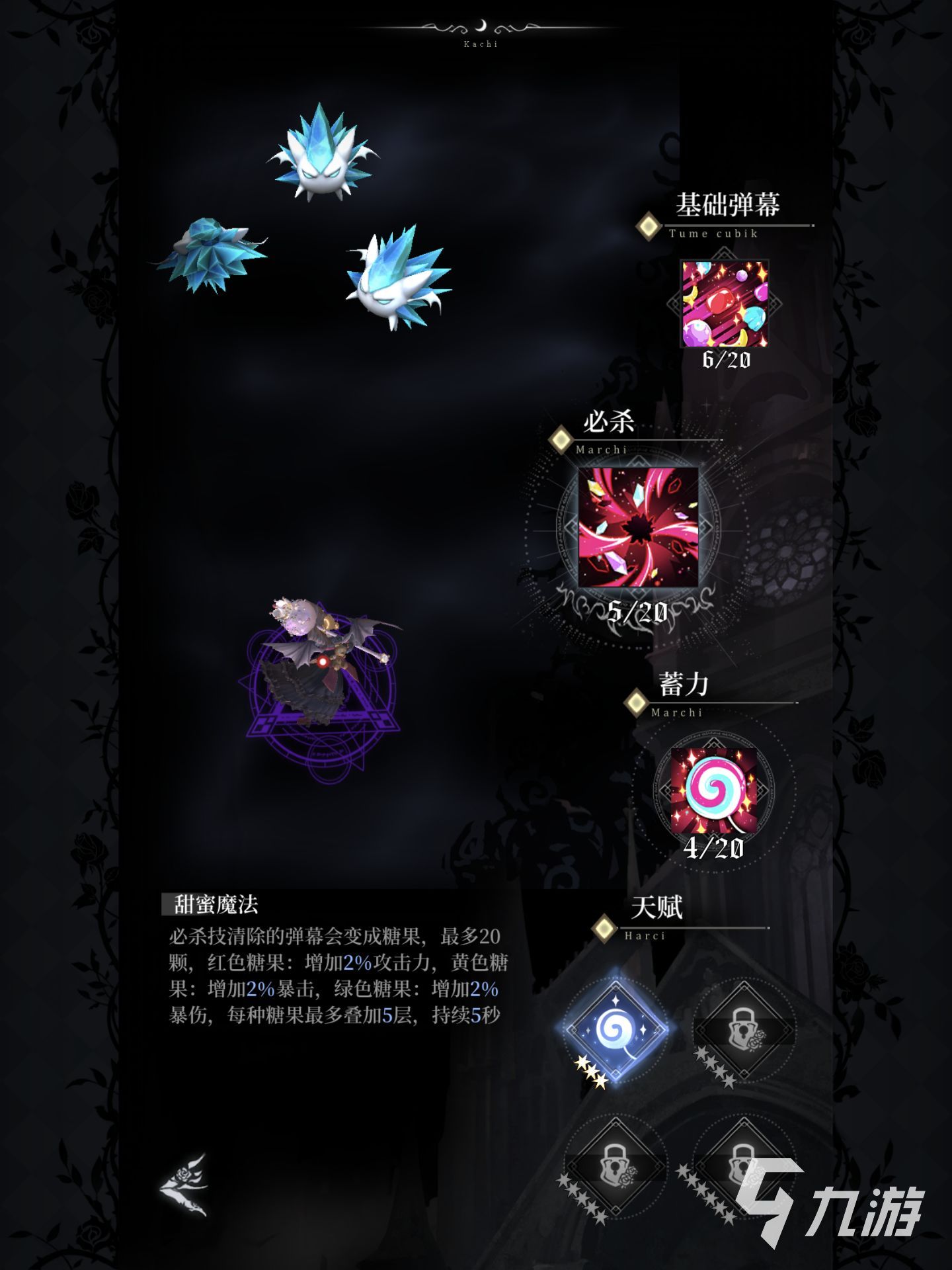 至于她的天賦技能,三星天賦可以直接將必殺技清除的彈幕變成糖果,三種顏色的糖果可以負債不同的效果,本身必殺技能就有清除全場彈幕的效果,而她制造出來的糖果,不僅可以增加攻擊力,增加暴擊率以及暴擊傷害,天賦等級四星之后解鎖的糖果盛宴,吃糖果還可以額外回復神火,這是什么概念?場上小怪比較多的時候,立馬釋放必殺技,將它們?nèi)孔兂商枪?,吃了之后神火又滿了,要知道其他兩個角色消耗的神火都是一起計算在內(nèi)的,所以有特蕾莎糖果盛宴天賦技能的隊伍釋放必殺技的頻率是非常高的。