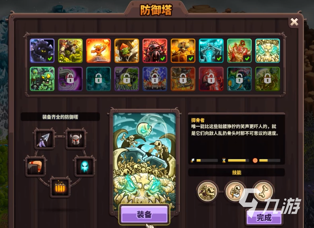 后期在跑圖通道后方一點(diǎn)的位置建立起新的箭塔擲骨者并進(jìn)行升級,該防御塔升級后可以派遣骷髏兵上前對敵,并且后方有著很高的射速、遠(yuǎn)程傷害,十分好用。