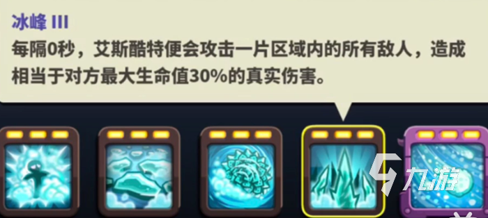 第四個技能叫冰峰,滿級可以使艾斯酷特的每一次攻擊變?yōu)榉秶鷤Γ斐蓴橙俗畲笊?0%傷害。