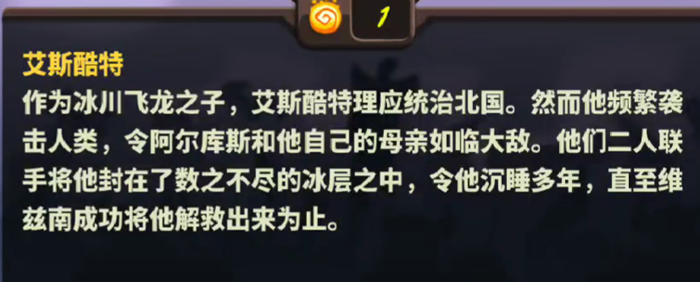 游戲中所給到的是艾斯酷特是冰龍之子,這樣的背景也使它的身份形象更加酷炫。