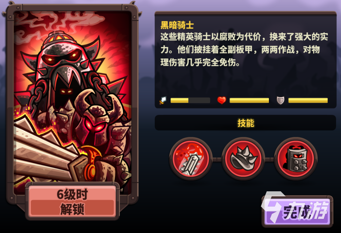 黑暗騎士是王國王國保衛(wèi)戰(zhàn)4中全新的兵擁有著極高的護甲以及生命值,是坦度最高兵營單位了。