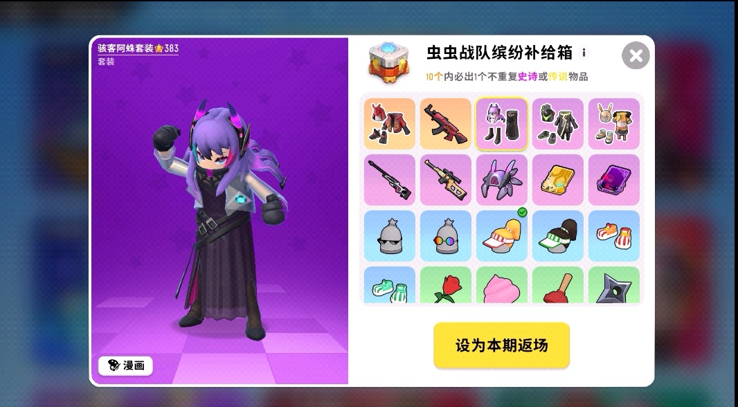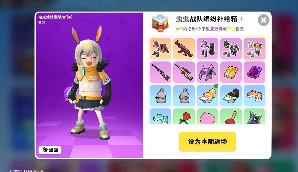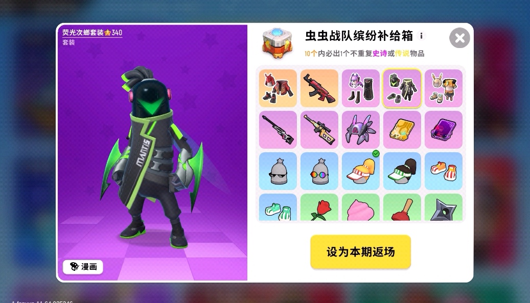 想要獲得蟲蟲戰(zhàn)隊皮膚和套裝的玩家,可以在商店中設(shè)置返場套裝,接著就可以去購買它了,蟲蟲戰(zhàn)隊是很值得獲得的套裝,有興趣的玩家不妨使用香腸派對加速器親自去購買一下,購買完成后,可以到倉庫中將套裝穿起來哦!