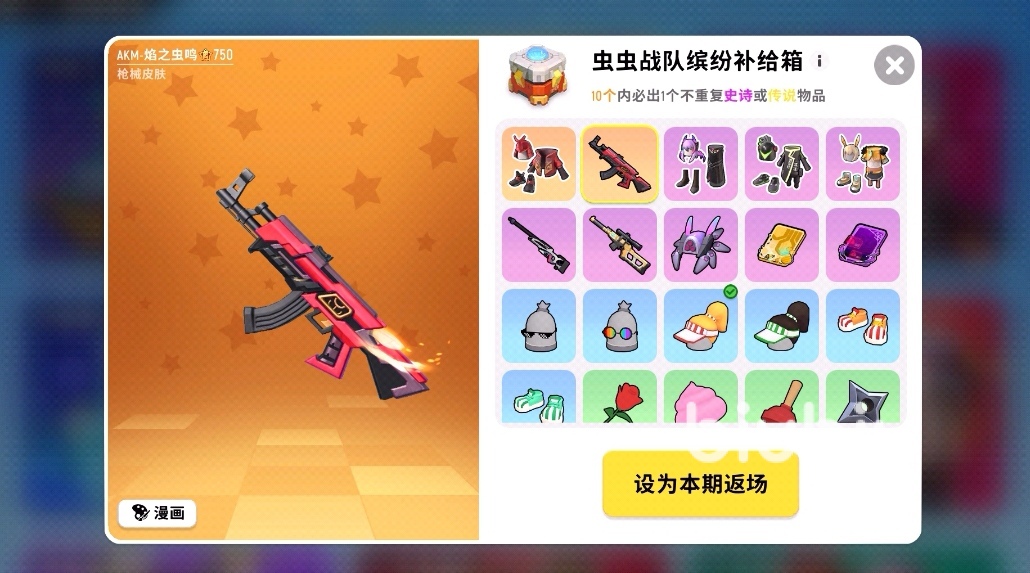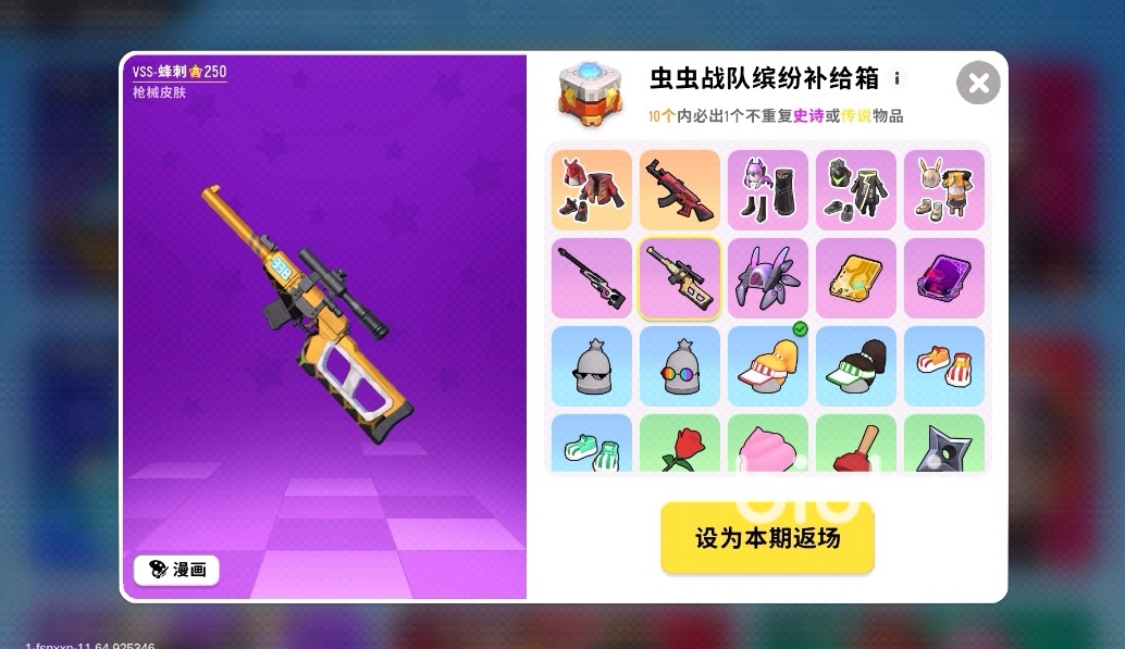 來源: 極光 作者: 阿堯 2021年09月09日 21:18在香腸派對中,玩家可以自己設(shè)置返場套裝,這些套裝都是比較受歡迎的,蟲蟲戰(zhàn)隊套裝也是如此,那香腸派對返場套裝之蟲蟲戰(zhàn)隊皮膚有什么呢?小編會為大家分享一下蟲蟲戰(zhàn)隊的香腸套裝和槍械皮膚,小香腸們可以跟小編一起往下了解一下哦!