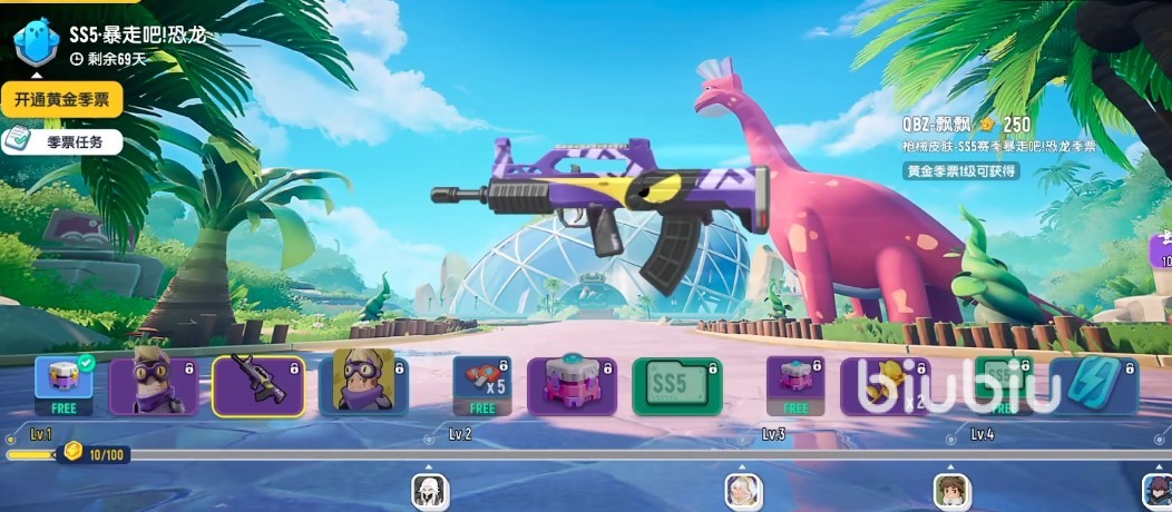 然后是季票任務(wù)里的第三段獎勵,也包含一個把免費(fèi)的QBZ飄飄槍皮。達(dá)到一定的收集進(jìn)度后還以活動的免費(fèi)的SLR恐龍皮膚,除了槍皮外,還有許多人物套裝,像是恐龍小迷弟套裝、迷妹套裝、飼養(yǎng)員套裝、恐龍偵查高手套裝。還有全新的馭龍術(shù)動作,仔細(xì)觀察、馴龍高手、狩獵失敗等一系列動作。