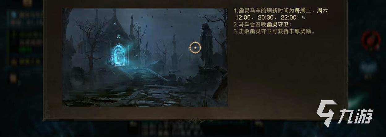這個幽靈馬車主要是出沒于阿什沃德墓園這個地方,注意一下,這個馬車不是全天候都有的,只會在每個星期二及星期六的中午十二點、晚上的八點半以及十點,這三個時間點會進(jìn)行刷新哦。