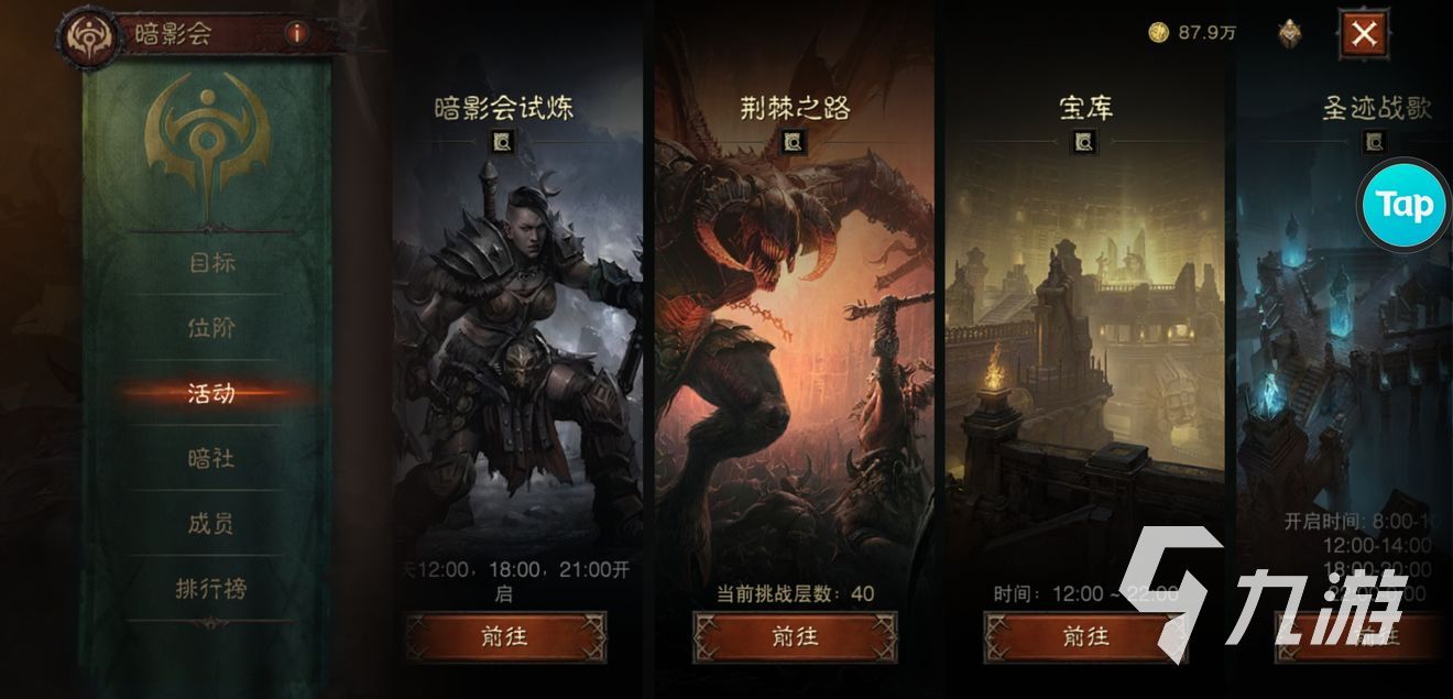 在具體的玩法上,小伙伴們?cè)谶x擇了暗影會(huì)這個(gè)陣營(yíng)之后,就能體驗(yàn)到“荊棘之路”、“流放之戰(zhàn)”、“密謀”以及“集會(huì)”等諸多的玩法,比如提到的第一個(gè)就是一個(gè)限時(shí)秘境的挑戰(zhàn),第二個(gè)就是陣營(yíng)PK的玩法,第三個(gè)則是日常陣營(yíng)任務(wù)。