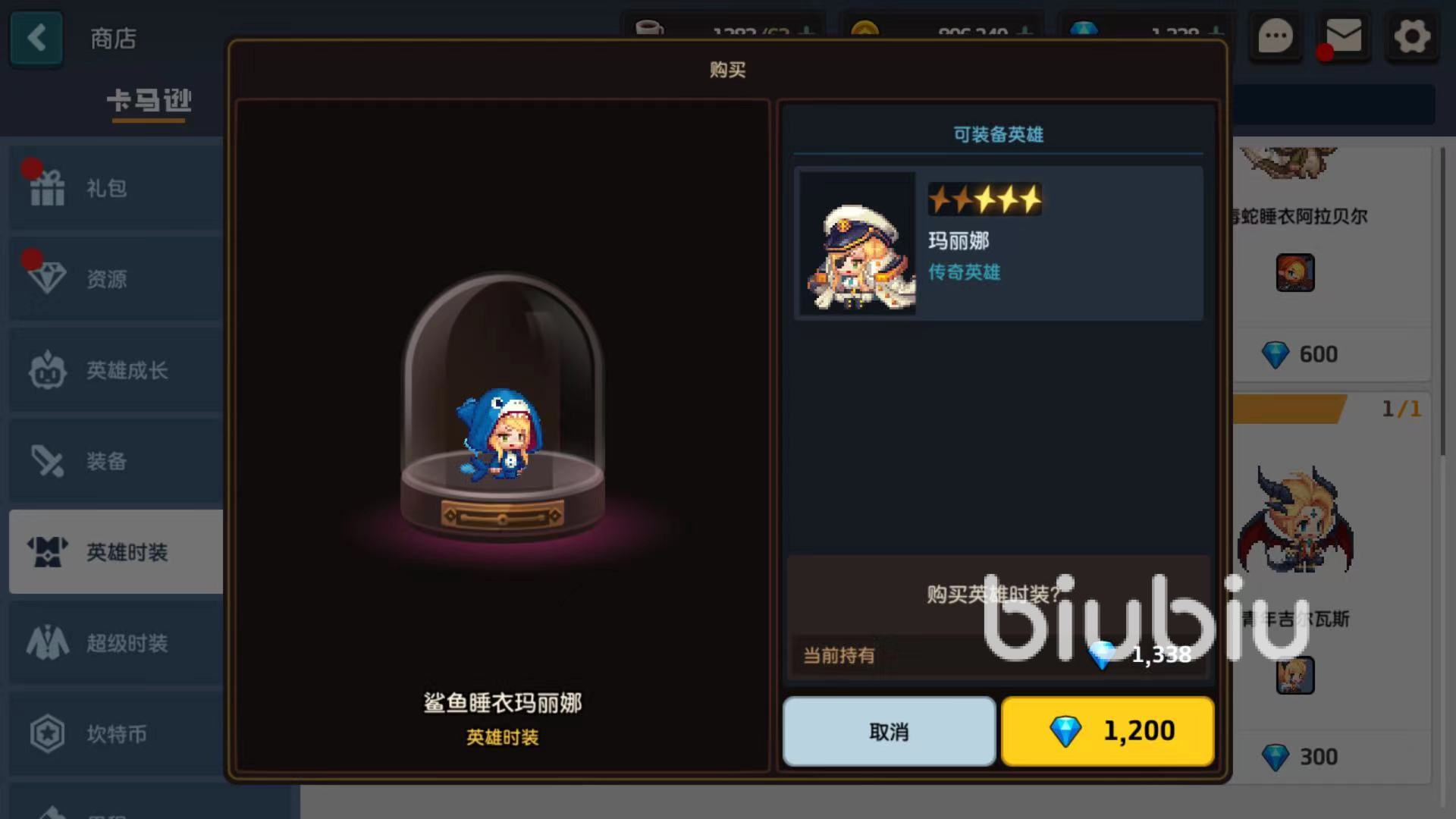 新時裝中通過在商店中進行消耗鉆石可以成功購買時裝,比如選擇鯊魚睡衣瑪麗娜時裝,可以通過消耗1200鉆石進行購買,購買成功后,可以讓瑪麗娜成功穿戴,可以提升瑪麗娜的生命值+0.7%。