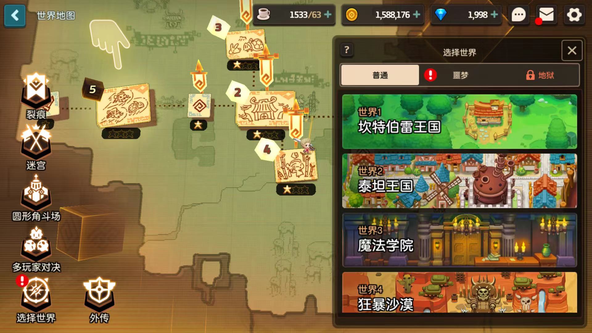 玩家進入游戲后,可以在主頁面中看到探索活動,在探索活動中,選擇世界九拉赫帝國,即可看到普通主線,噩夢主線任務,此處選擇新活動-噩夢主線任務進入。不知道如何下載此游戲的小伙伴們可以通過biubiu加速器下載,通過坎公騎冠劍加速器還可以免費提升游戲速度,輕松暢游。