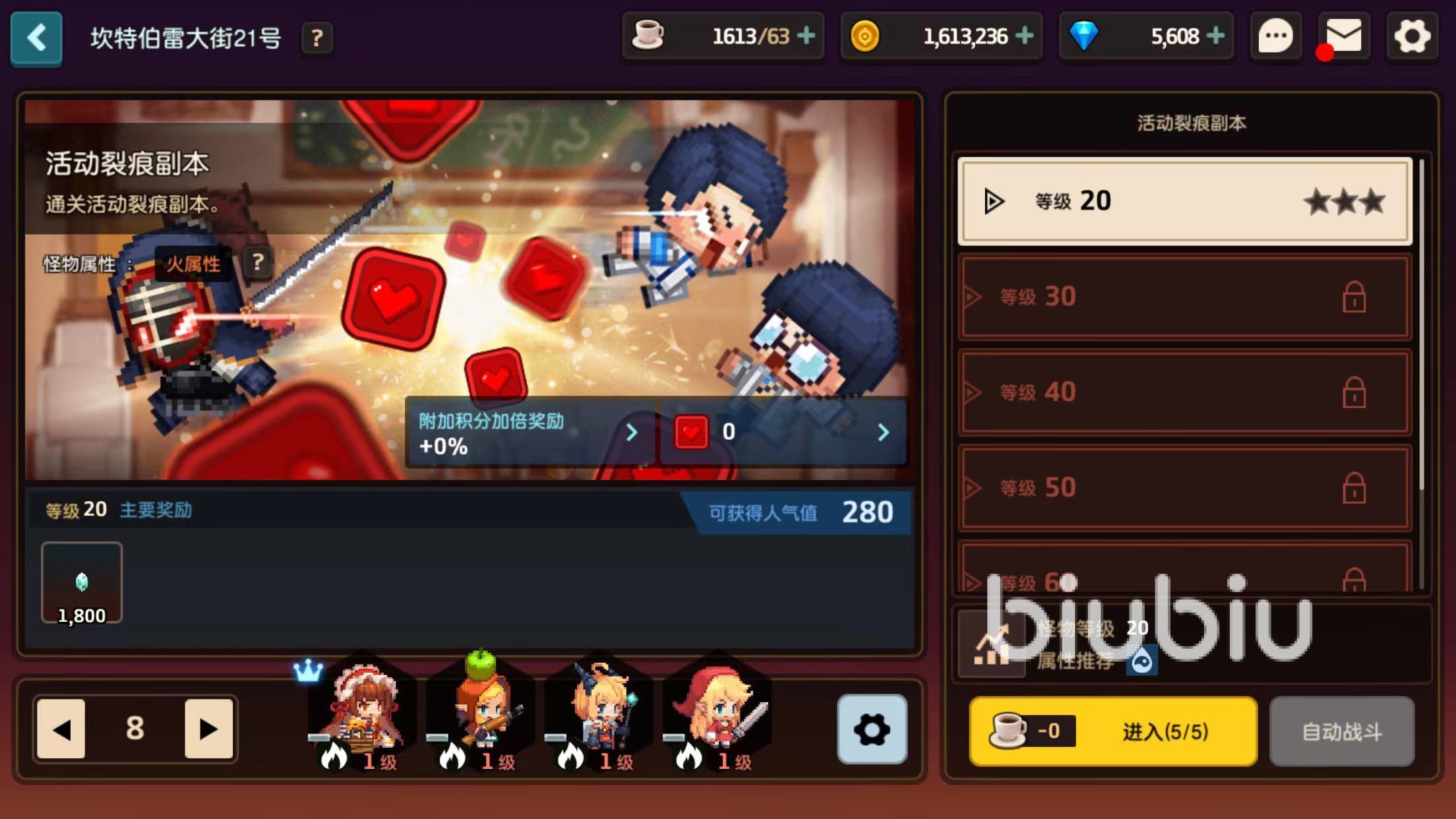 在此活動(dòng)范圍內(nèi)可以通過(guò)參與故事活參與裂痕兩種方式,在裂痕活動(dòng)中,玩家可以通過(guò)挑戰(zhàn)各種不同的等級(jí)關(guān)卡獲得積分,比如在等級(jí)20級(jí)時(shí)挑戰(zhàn)的怪物屬性是火屬性,玩家可以通過(guò)選擇相克屬性的隊(duì)員上陣擊敗怪物,還可以通過(guò)使用多種特定的英雄額外獲得積分獎(jiǎng)勵(lì)。比如選擇九尾狐佳嵐可以獲得額外積分獎(jiǎng)勵(lì)+20%。
