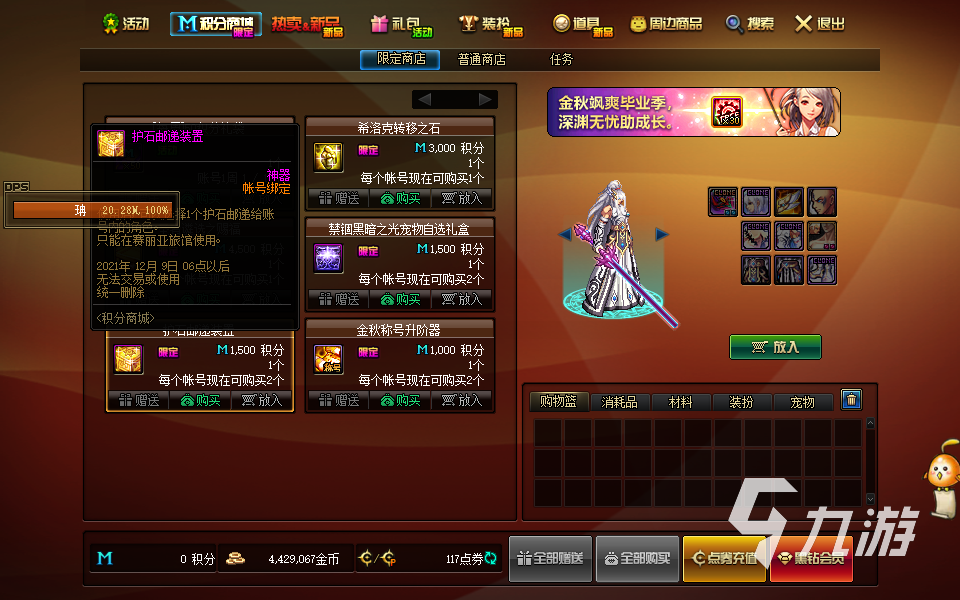 3、使用1500的積分在積分商城內(nèi)兌換1個(gè)護(hù)石的郵遞裝置,能直接轉(zhuǎn)移護(hù)石。4、在周常委托任務(wù)改版以后,雖然獎(jiǎng)勵(lì)已經(jīng)減少了很多,但是大家的任務(wù)完成難度卻一直在下降,達(dá)到100的任務(wù)點(diǎn)就能夠選擇獲得5個(gè)黑夜殘息材料,雖然數(shù)量不多,但能夠有效的加速玩家護(hù)石和符文的畢業(yè)還是很不錯(cuò)的。