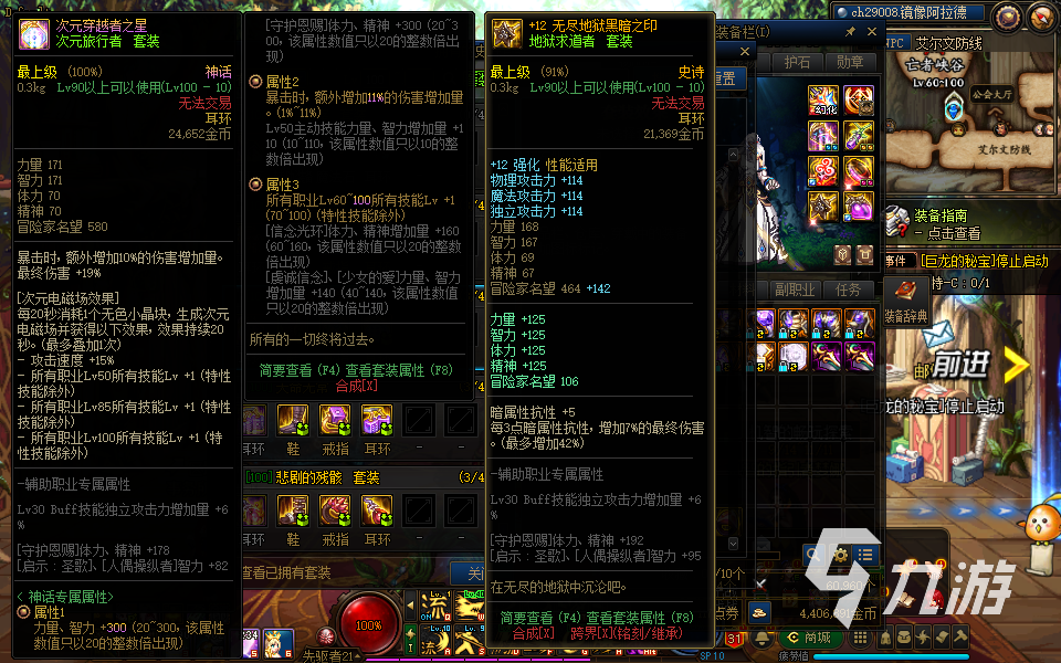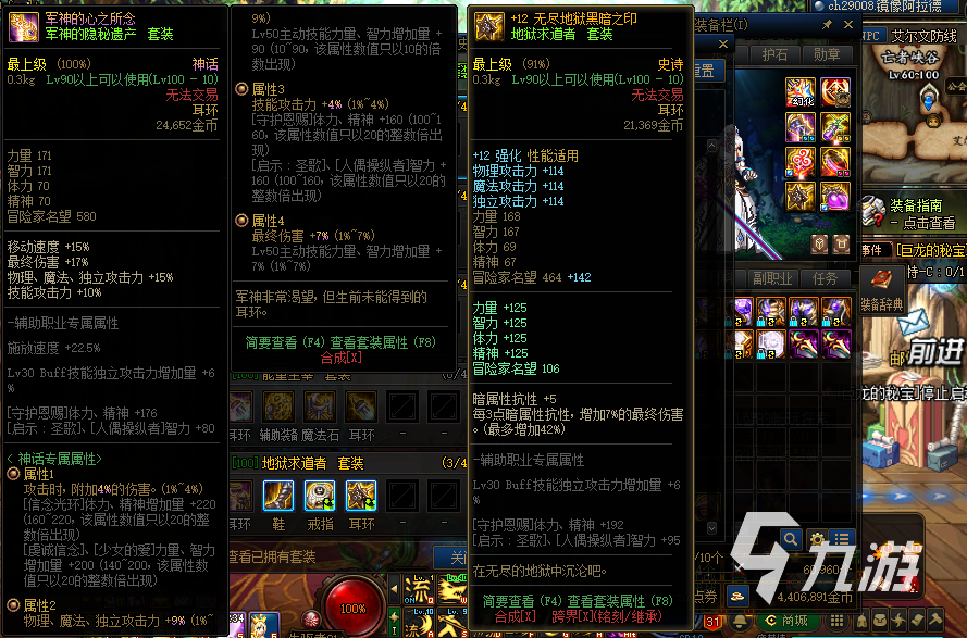 2、在奈克斯裝備下——主要帶來的提升是黃字、爆發(fā)傷害及力智力的提升,在這搭配下,最好的前三的神話排名為:次元耳環(huán)、大幽魂上衣和軍神耳環(huán)。