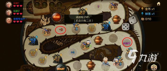 這個(gè)副本其實(shí)就是大富翁類型的玩法,小伙伴們?cè)谟螒虍?dāng)中可以通過(guò)丟骰子來(lái)獲得點(diǎn)數(shù),然后大家就會(huì)按照點(diǎn)數(shù)進(jìn)行前進(jìn)。游戲內(nèi)的格子代表著不同的獎(jiǎng)勵(lì)以及挑戰(zhàn),進(jìn)入之后大家需要擊敗里面的boss,才可以繼續(xù)前進(jìn),所以說(shuō)裝備有優(yōu)勢(shì)的小伙伴們,前進(jìn)的速度也是會(huì)更快的。