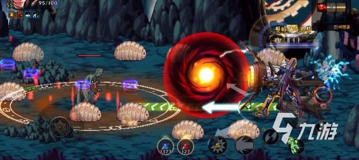 2圖則是有四個(gè)人在挖寶藏,然后出來了個(gè)魔劍,這個(gè)圖主要就是打魔劍,魔劍的話其實(shí)傷害不高,大家最好是利用小技能搭配普攻進(jìn)行擊殺,具體的原因后面會給大家講到。