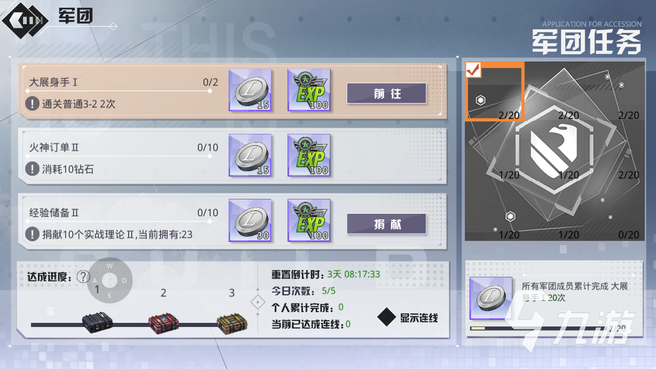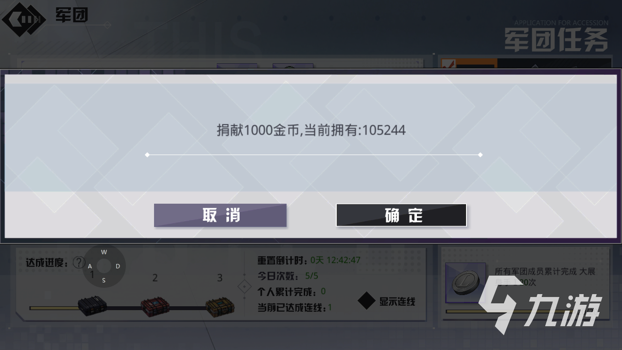 那么在加入軍團之后可以做些什么呢?基本的就是軍團任務(wù)了,這個任務(wù)的話包含的類型是比較多的,小到一些貨幣的消耗,大到一些戰(zhàn)斗的玩法都是有任務(wù)設(shè)定的。這些任務(wù)在完成之后是可以獲得軍團貨幣的,這個貨幣可以在軍團里面進行道具的購買。如果說玩家想要快速獲得資源獎勵的話,那么可以通過捐獻來進行操作,這個就看玩家的資源了。