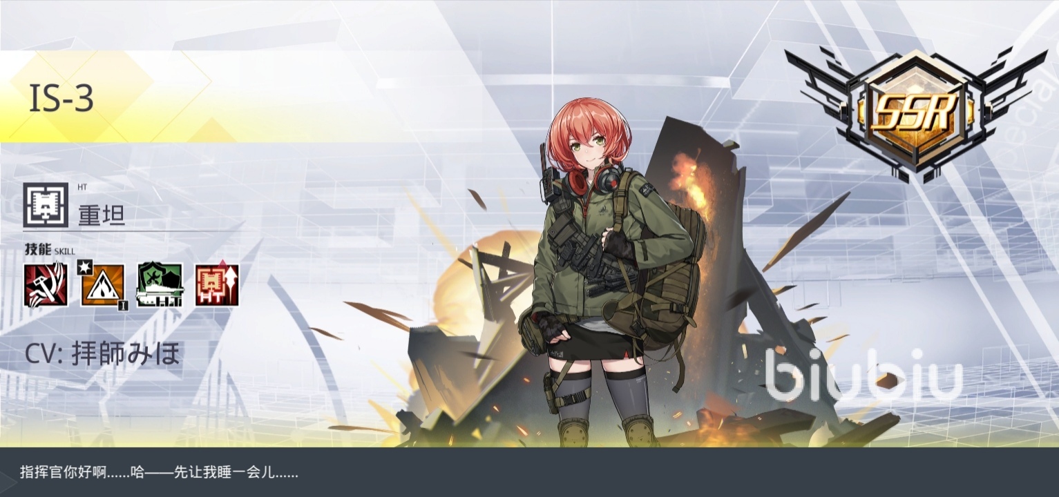 首先是重坦一般都擺放在游戲的前排用來抵擋傷害,并且進(jìn)行輸出,本身的強(qiáng)度要求是比較高的,所以對于SSR品質(zhì)的重坦小編特別推薦虎式和IS-3,這兩個技能輸出傷害高,而且本身的強(qiáng)度也比較槍能夠抵擋大量的傷害,在重坦這個分類中屬于比較優(yōu)質(zhì)的角色。