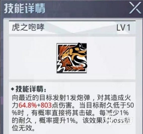 首先玩家需要知道,在潘多拉的回響這款游戲當(dāng)中虎式重坦,擁有超高的武力和防御力,他的技能包括了虎之咆哮和以虎之名,虎之咆哮是一個(gè)重型的殺傷炮彈,這種爆彈攻擊的范圍廣,距離遠(yuǎn),雖然外形看起來非常的可愛,但是,他的攻擊能力不容小覷。