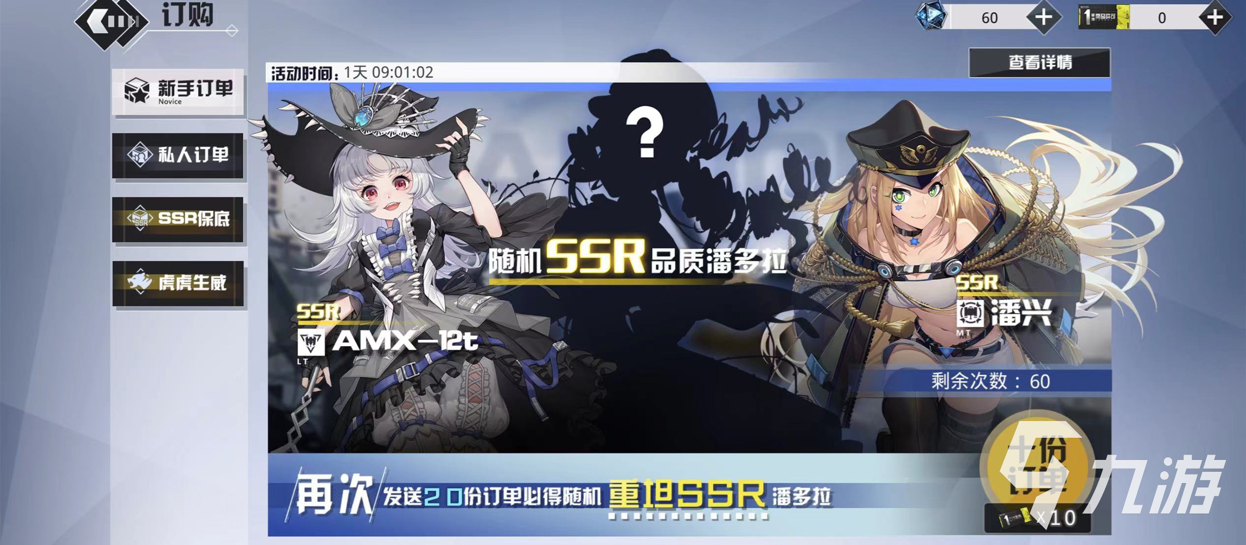 萊茵的獲取途徑目前來(lái)說(shuō)只有一種方式,請(qǐng)玩家前往右手邊的訂購(gòu)板塊進(jìn)入,找到新手訂單進(jìn)行抽取就可以,需要用10個(gè)蒼藍(lán)結(jié)晶來(lái)進(jìn)行抽取,每天的剩余次數(shù)都在60,玩家們可放心的抽取。