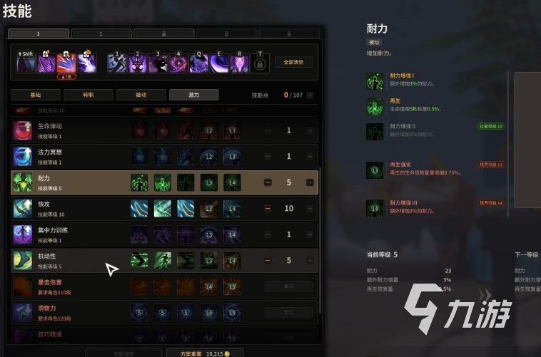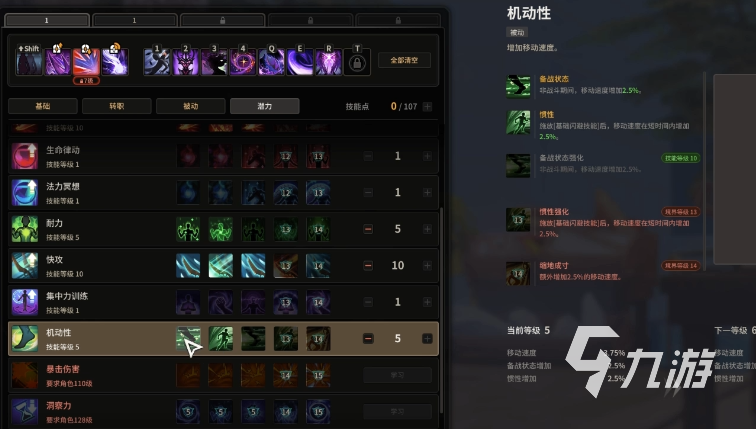 二、家需要注意機(jī)動(dòng)性這個(gè)技能,這個(gè)技能加點(diǎn)是還有不錯(cuò)的效果,這個(gè)技能用來(lái)躲避技能,從而完整的使用二段跳,來(lái)打出浮空打連招。