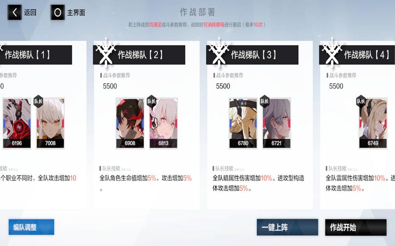 展開以后,通常會(huì)有三波關(guān)卡,每波關(guān)卡中還是會(huì)有小關(guān)。進(jìn)到之后讓咱們部署每小關(guān)的通過關(guān)卡人物,依據(jù)每一個(gè)小關(guān)難度的強(qiáng)弱會(huì)搭配不一樣的總數(shù)。因此這一個(gè)模式,要咱們有較深的凳子深度。與此同時(shí),當(dāng)然更不是一些新游戲玩家可以刷起來的。