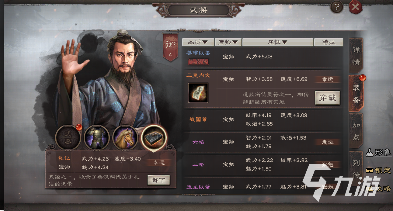 我們可以在尋訪使尋訪的時(shí)候,給其加魅力的戰(zhàn)法進(jìn)行升級(jí)(一級(jí)就行),此時(shí)會(huì)有更高概率爆出高品質(zhì)道具(通常情況下會(huì)出紫卡),因此我們可以嘗試重置戰(zhàn)法點(diǎn)→升級(jí)戰(zhàn)法的方式,白嫖更多的紫卡、橙卡。