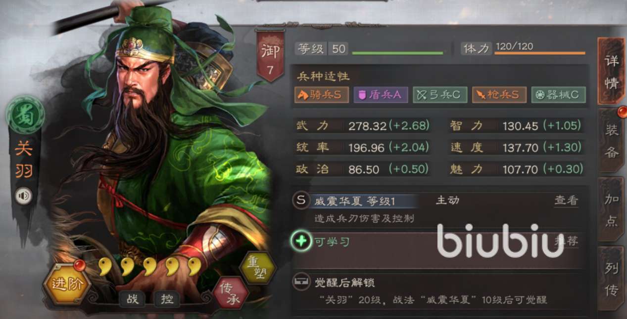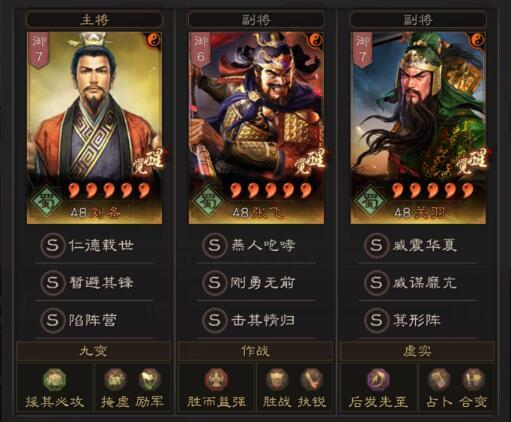 如果手上沒有陷陣的話,小伙伴們也可以給大哥換為虎衛(wèi);或者手上沒有威謀的話,則可以將其換為據(jù)水。