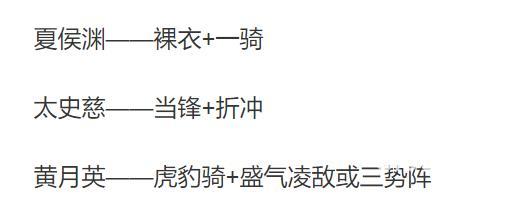 第二個(gè)就是小伙伴們都不陌生的菜刀隊(duì)了,隊(duì)伍里有夏侯淵、黃月英,還有一個(gè)太史慈,具體的配置如下: