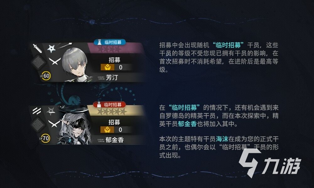 新干員【海沫】的相關(guān)信息目前還沒有消息,不過確定是作為本次肉鴿的臨時招募限定干員出現(xiàn),在玩家們正式獲得【海沫】之前呢也可以在臨時招募中見到,不過應(yīng)該會少一個天賦吧(像之前的一樣),大概是閹割版本,不過可以肯定玩家在獲取后自己練出來會有強度提升并且在肉鴿中會獲得額外加成天賦。