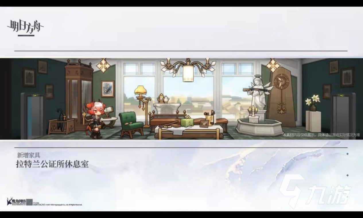 根據(jù)干員見行者的描述打造的拉特蘭公證所休息室,但是菲亞梅塔卻對此表示興趣不大。小編認為新家具實際上十分的溫和百搭,雖然風格不夠鮮明,但是各類家具擺放以及設計貼近現(xiàn)實生活,作為休息室的話毫無疑問會非常舒適溫馨
