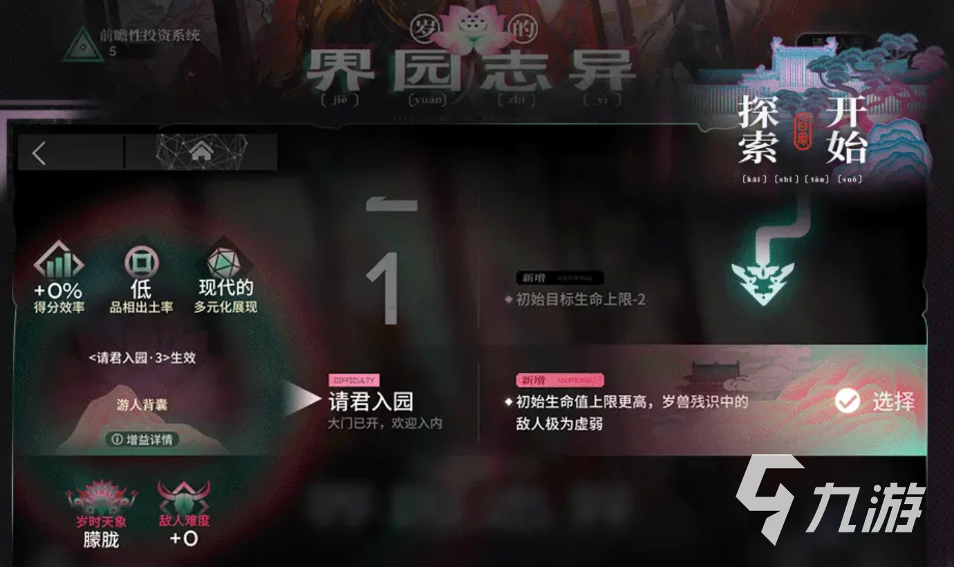 難度:在本次玩法中,“請(qǐng)君入園”提供15個(gè)擴(kuò)展難度等級(jí),每完成一個(gè)難度等級(jí)時(shí),下一個(gè)難度等級(jí)也會(huì)隨之解鎖,等級(jí)提升后會(huì)面臨更加嚴(yán)峻的戰(zhàn)斗環(huán)境,難度提升會(huì)遇到難度更大的歲時(shí),入園等級(jí)達(dá)到3,6,9級(jí)時(shí),多元奇物的效果會(huì)有一定程度的提升,部分分隊(duì)效果也會(huì)有所提升。