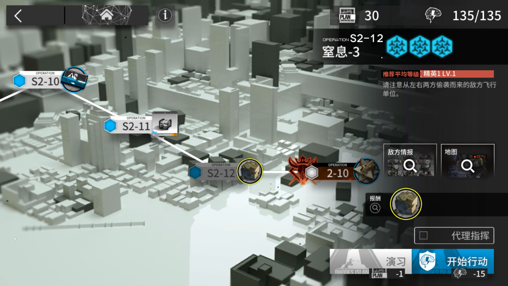s2-12作為前期劇情關(guān)卡,整體難度不高,雖然本關(guān)的推薦平均等級(jí)為精英一階段1級(jí),但是只要靈活搭配干員陣容,明確部署順序,本關(guān)哪怕全員20級(jí)無(wú)精英也是可以輕松通關(guān)的。s2-12本身屬于附屬類型的關(guān)卡,以空中作戰(zhàn)為主,因此干員選擇方面應(yīng)該多選擇狙擊干員,對(duì)于低練度的玩家而言至少要選擇4名可以對(duì)空的干員以及至少兩位術(shù)士干員,其它干員隨意。