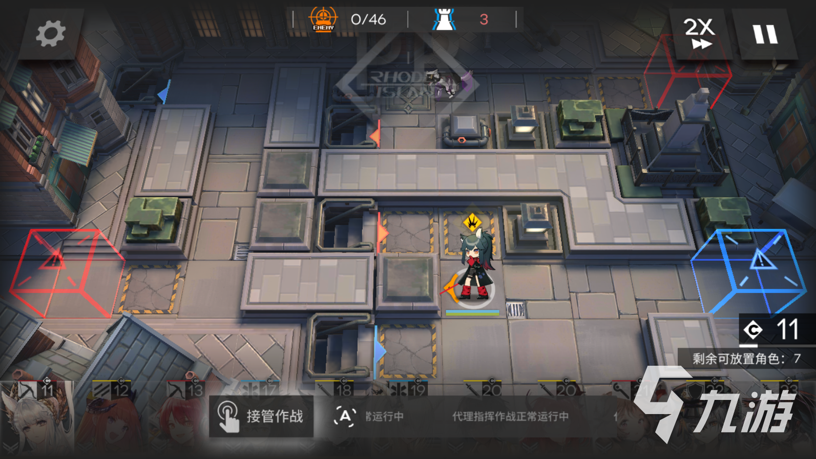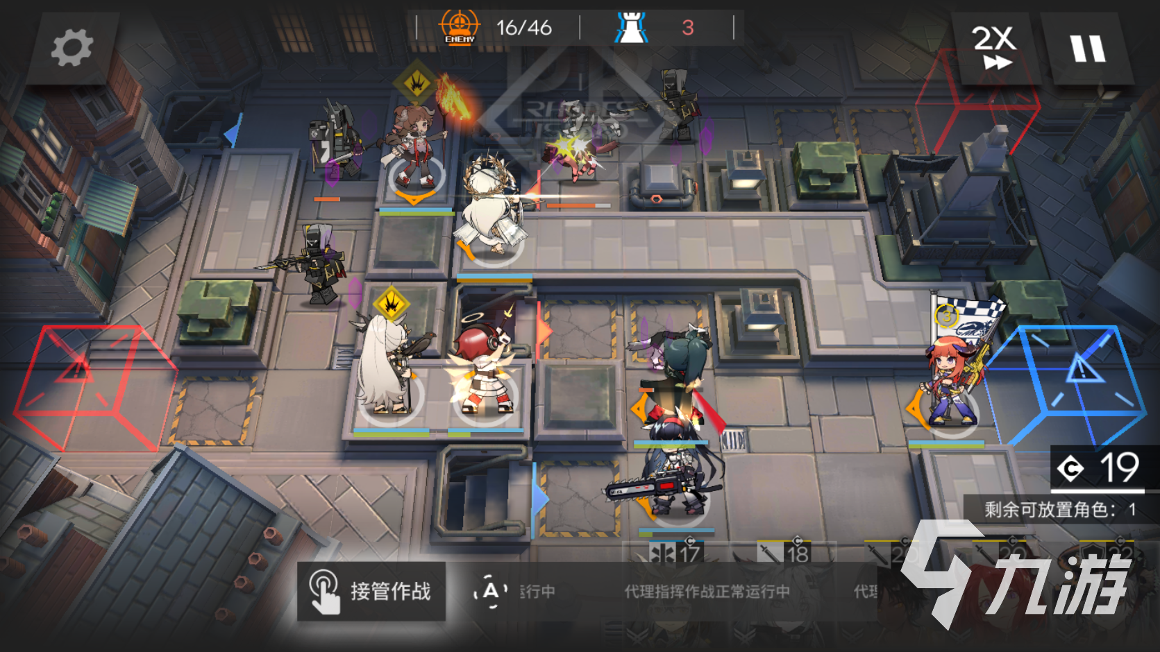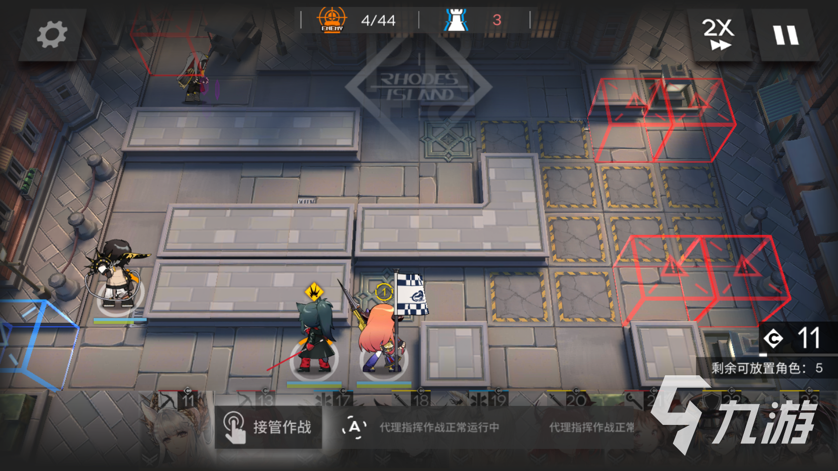 9-5開局的敵人都很弱,我們單先鋒開局費(fèi)用也是完全足夠的,等到費(fèi)用到達(dá)一定程度后就可以分別部署近衛(wèi)(群攻近衛(wèi)最佳),狙擊和術(shù)士了。這里要注意部署的順序并及時(shí)跟上醫(yī)療干員,否則高臺(tái)可能會(huì)因?yàn)閿撤缴畛鼐褤羰侄沟?。干員部署完成后就可以掛機(jī)等待通關(guān)了,干員們的技能就都留給深池盾衛(wèi)即可。