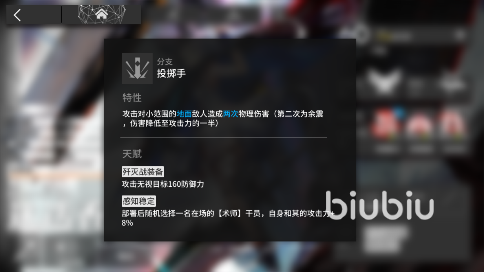 干員迷迭香是一位六星特化狙擊干員,其特化的方向在于攻擊范圍以及攻擊輸出模式,我們可以看到迷迭香的有效攻擊范圍非常大,與守林人不相上下。而迷迭香的攻擊在命中敵人時(shí)還會(huì)觸發(fā)“余震”,余震會(huì)對小范圍的敵人造成二次傷害,傷害為基礎(chǔ)攻擊傷害的一半,也就是說迷迭香每次攻擊都會(huì)有兩段傷害,這就在一定程度上提高了吃拐率,不過根據(jù)小編的實(shí)戰(zhàn)測試來看,余震雖然是AOE傷害但是清怪能力還是不夠看的。