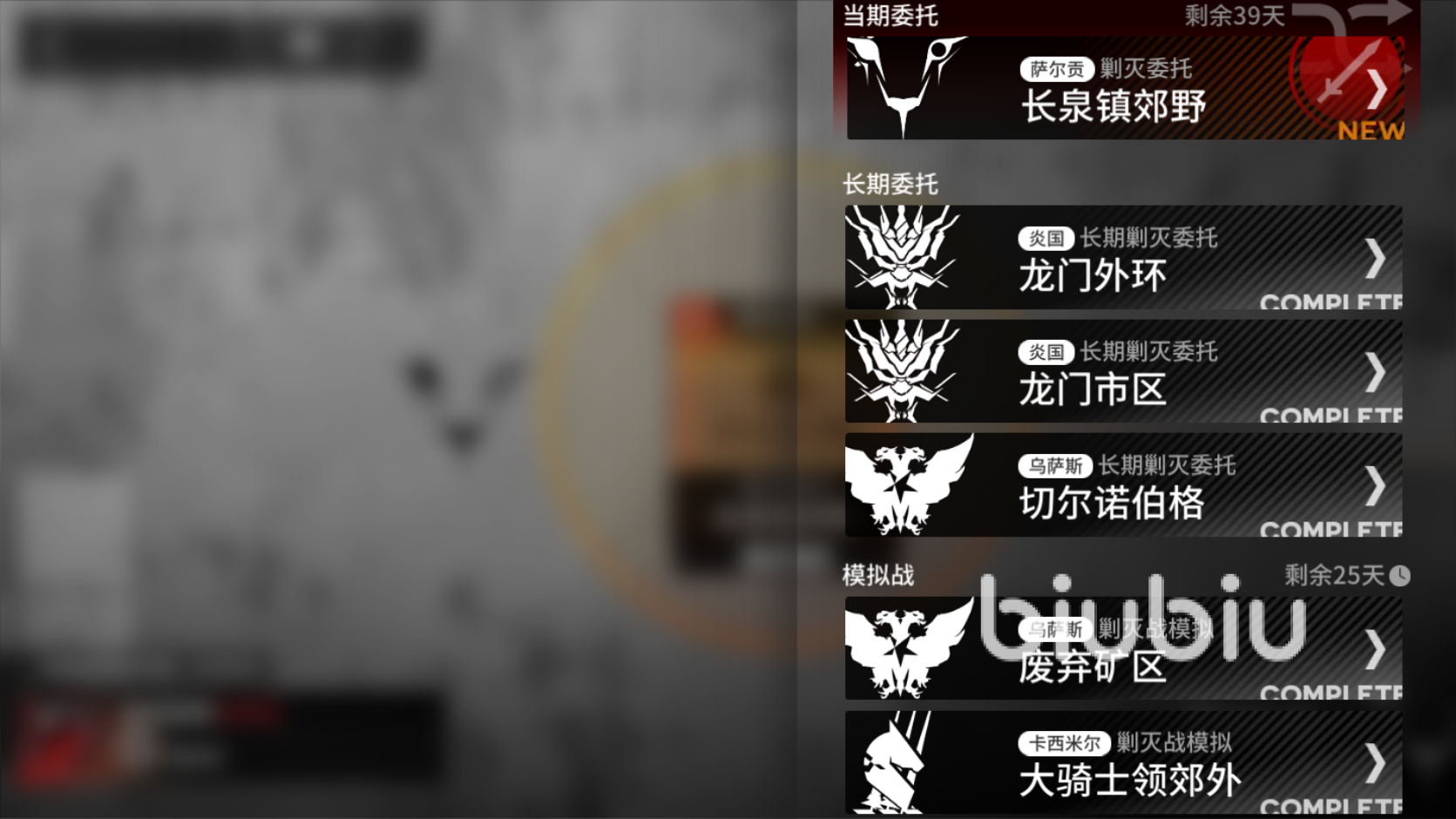 剿滅模式中只有常駐委托和當(dāng)期委托是有合成玉獎(jiǎng)勵(lì)的,而限時(shí)委托(模擬戰(zhàn))只有在首通時(shí)才會(huì)有獎(jiǎng)勵(lì),之后反復(fù)刷取是不會(huì)有額外獎(jiǎng)勵(lì)的。從下圖我們可以看到,在當(dāng)前版本中的當(dāng)期委托是長(zhǎng)泉鎮(zhèn)郊野,而常駐委托是切爾諾伯格,龍門市區(qū)和龍門外環(huán)。通過(guò)點(diǎn)擊剿滅模式主界面的地圖就可以選擇對(duì)應(yīng)的剿滅委托進(jìn)行正式的關(guān)卡攻略了。