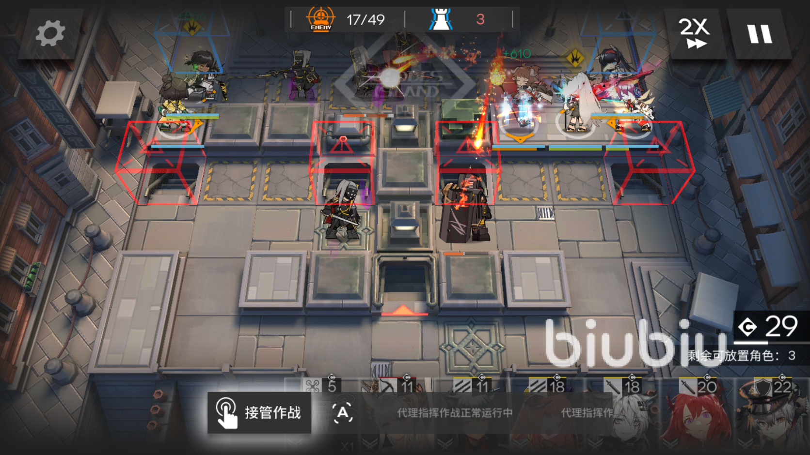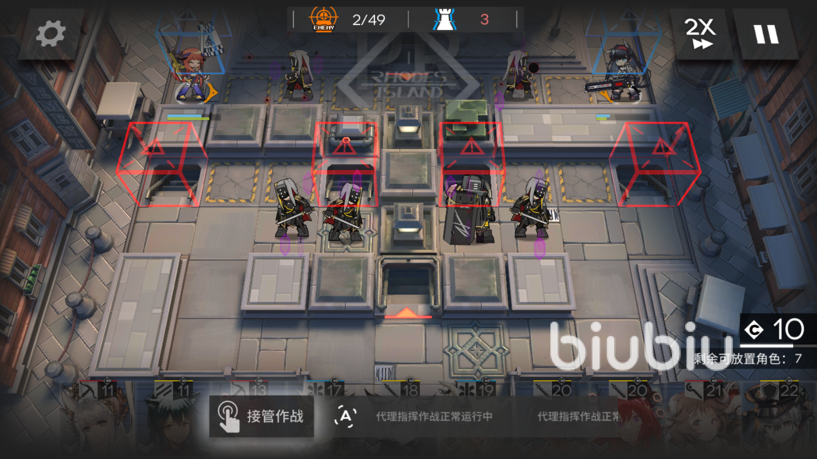 處理掉兩個術(shù)士后本關(guān)就好打多了,下面雖然有四個敵方出怪口但是由于路線單一非常好防守。敵人的攻擊頻率不高,使用重裝干員+群體術(shù)士干員就可以輕松解決,順利通關(guān)。但一定要注意部署順序,不要讓高臺吃到仇恨。