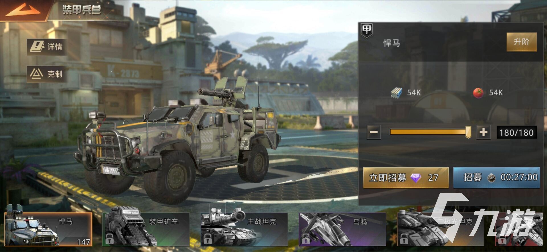 我們點擊裝甲兵營,進入到裝甲兵訓練列表之中去,這時候能夠發(fā)現(xiàn)在訓練的旁邊是有著一個鉆石立即招募的選項的,通過這個選項,小伙伴不要一秒的時間就可以獲得自己想要的裝甲兵了,還是非常好用的,但是除非有特殊的任務,否則一般就不要用了,鉆石的獲得還是非常困難的。