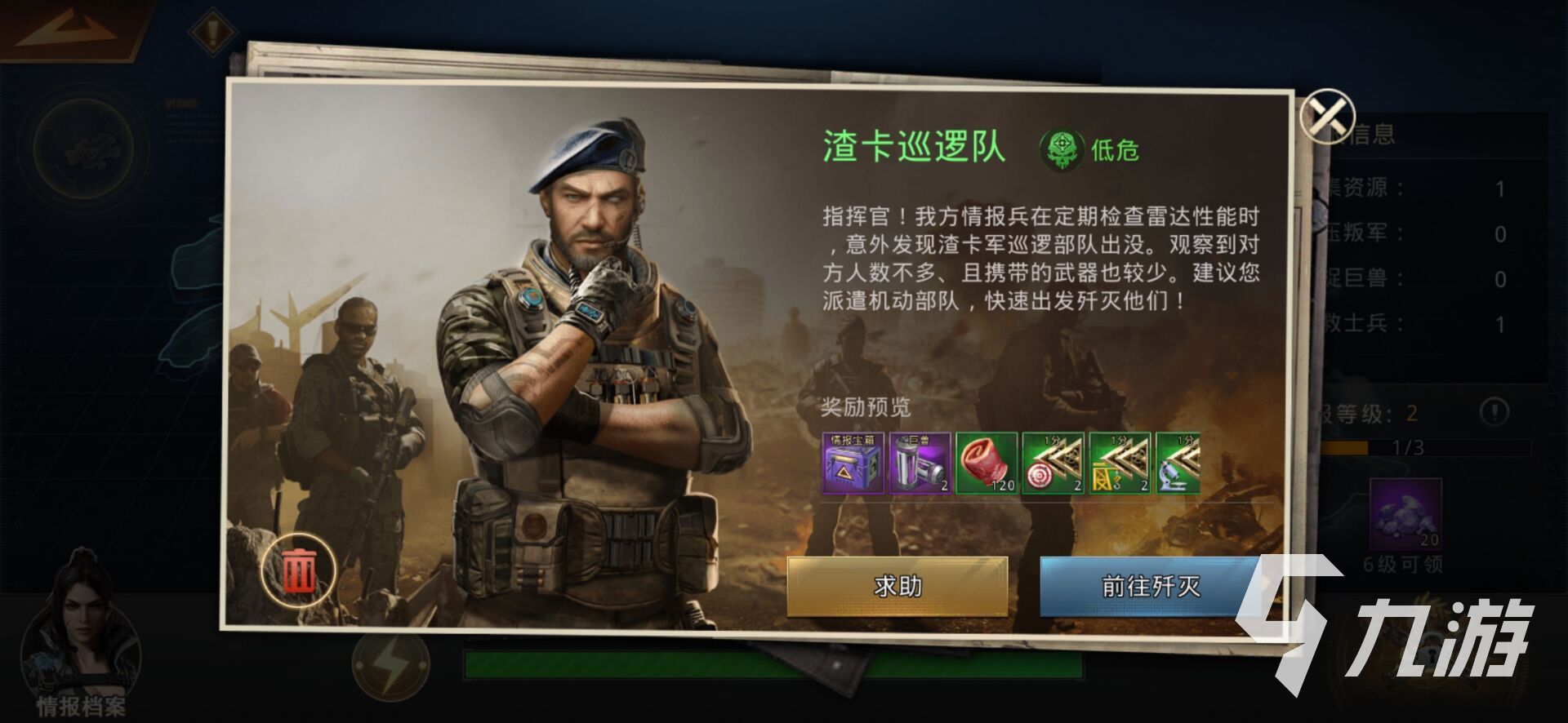 在探索完成之后,地圖上就會(huì)出現(xiàn)任務(wù)點(diǎn),隨著時(shí)間和等級(jí)的不同,每次的情報(bào)中心所獲得的任務(wù)都是有所不同的,有一些是來(lái)自于友軍的求救信息,這時(shí)候我們派遣部隊(duì)前去支援就好了。除此之外,還有叢林探寶,喜歡搞破壞,這樣的探索地圖的任務(wù),小伙伴都是可以直接接受的。