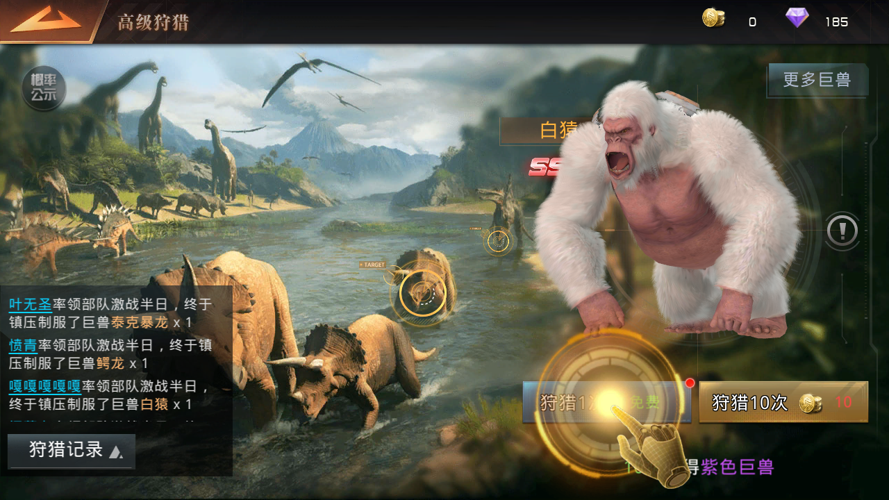 而高級卡池的話消耗的是高級狩獵幣,在這里面可以獲得高級的稀有巨獸,當然了幾率方面嘛也是要依靠次數(shù)來進行彌補的。而高級狩獵幣的獲取方式有一些難度。除了可以氪金來使用鉆石獲得之外,就只有通過一些挑戰(zhàn)玩法來獲得,所以說高級巨獸獲取不是那么容易的。