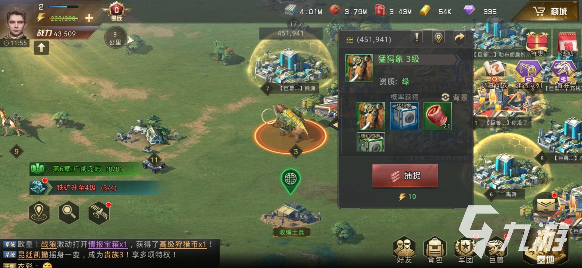 第六章的任務(wù)還是非常之多的,小伙伴需要完成建設(shè)情報中心,完成兩次情報任務(wù),提升自己的鋼巖角龍到十級,有兩只恐龍到達十級,提升自己的裝甲兵營,招募一定數(shù)量的士兵,捕捉巨獸,擁有兩只藍色品質(zhì)的恐龍這些任務(wù),可以看出來并不是特別簡單,小編在這里給小伙伴詳細介紹一下有幾個比較難以完成的任務(wù)完成方式。