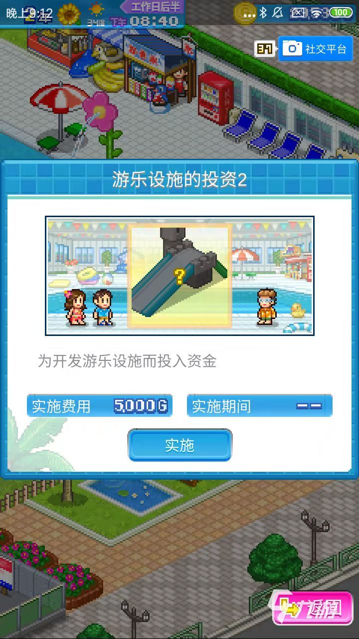 比如選擇游樂設(shè)施的投資,為開發(fā)游樂設(shè)施而投入資金,實(shí)施費(fèi)用為5000個(gè)金幣,當(dāng)完成后可以從阿南商店中獲得城堡滑梯新的建筑,在建設(shè)中選擇新的建筑投入使用可以提升玩家的滿意度,還會(huì)在商店中增加新的商品供購買。