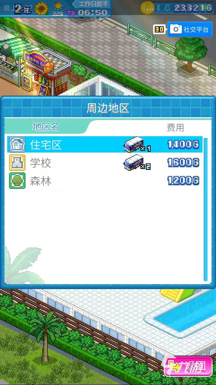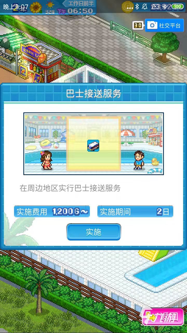 其中包括雜志刊登,巴士接送服務(wù),游樂場設(shè)施投資,休息設(shè)施投資,用地?cái)U(kuò)大工程投資,當(dāng)選擇巴士接送任務(wù)是通過消耗1200個(gè)金幣,可以進(jìn)行對(duì)周邊地點(diǎn)實(shí)行巴士接送服務(wù),實(shí)施期間為兩日,選擇實(shí)施后選擇相應(yīng)的周邊地點(diǎn),其中包括住宅區(qū),學(xué)?;蛏?,對(duì)于多種不同的地點(diǎn),距離的遠(yuǎn)近也會(huì)導(dǎo)致費(fèi)用的不同。比如選擇學(xué)校地點(diǎn)可以查看到居民的數(shù)量和點(diǎn)贊分?jǐn)?shù),當(dāng)選定后則可以開始進(jìn)行巴士接送服務(wù),當(dāng)巴士接送人員,前往泳池后可以在短時(shí)間內(nèi)增加相應(yīng)的人數(shù)和營業(yè)額,還會(huì)增加滿意度。