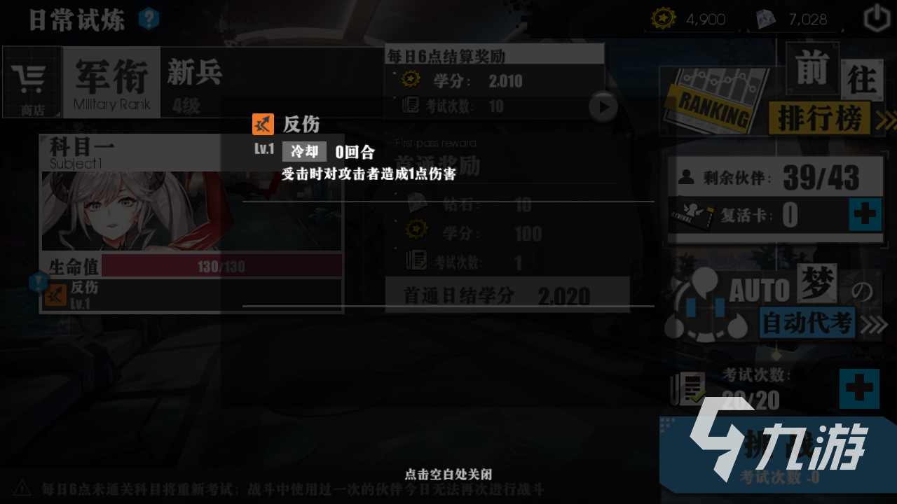 在關(guān)卡獲得勝利之后,可以獲得哪些獎(jiǎng)勵(lì)呢?這個(gè)獎(jiǎng)勵(lì)還是比較豐富的,鉆石是基礎(chǔ)的獎(jiǎng)勵(lì),每次通過一個(gè)關(guān)卡的戰(zhàn)斗之后,可以獲得對(duì)應(yīng)鉆石獎(jiǎng)勵(lì)。其次就是考試卡,學(xué)分以及考試次數(shù)的增加??荚噷W(xué)分的話是比較重要的,可以在學(xué)分商店中兌換想要的道具獎(jiǎng)勵(lì)。除了獎(jiǎng)勵(lì)之外,這個(gè)模式還有一個(gè)軍銜的設(shè)定,這個(gè)軍銜就是通過挑戰(zhàn)來進(jìn)行提升的。隨著軍銜等級(jí)提升,在商店中的獎(jiǎng)勵(lì)也是會(huì)越來越好的。